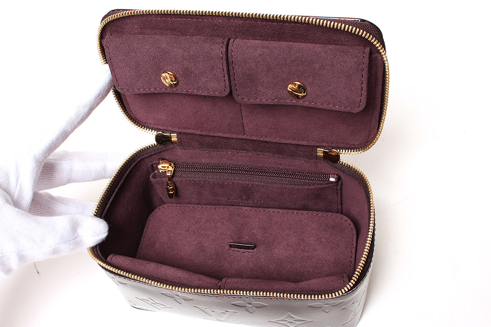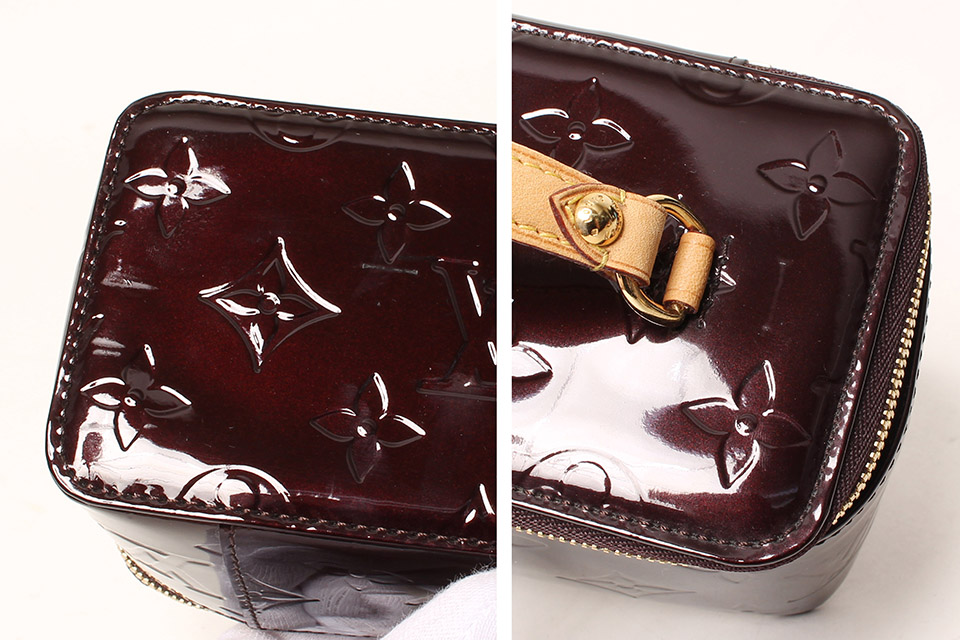 金具に小傷、ヌメ革に薄っすらとヤケ、表面や底面にスレは見られますが、全体的に綺麗です。箱なし。保存袋(薄汚れ)あり。