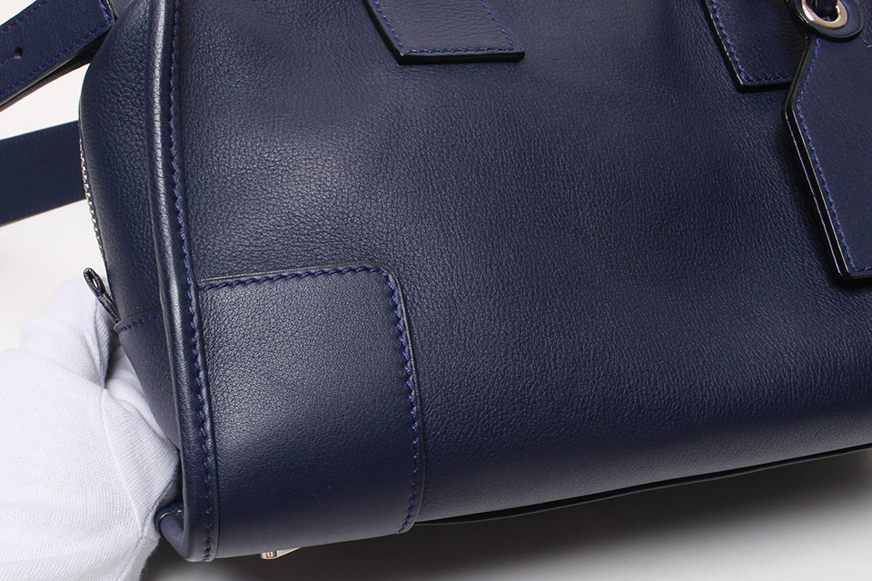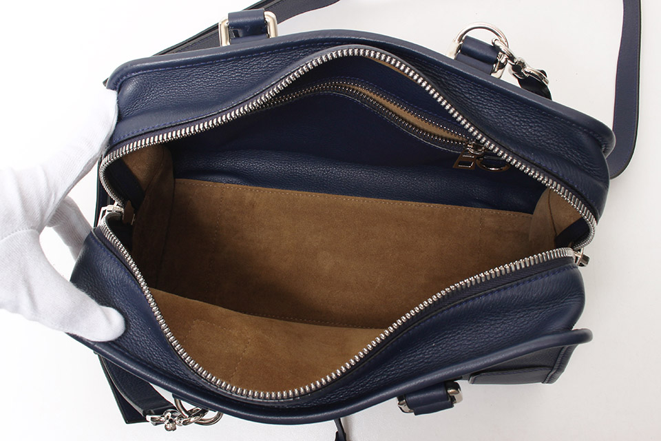 金具に小傷、表面や背面に薄っすらとスレやハンドルの型付き、内側にスレは見られますが、全体的に綺麗です。箱なし。保存袋・ネームタグ・ショルダーストラップあり。