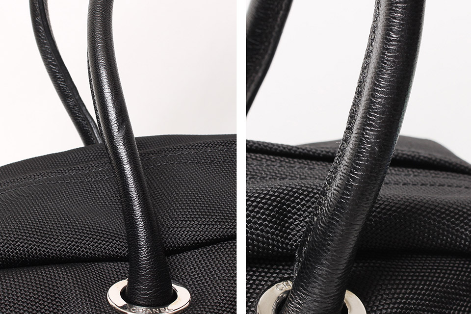 金具に小傷、ショルダーにスレ、型くずれが見られ、香水のような香りが残っていますが、全体的に綺麗です。箱・保存袋なし。