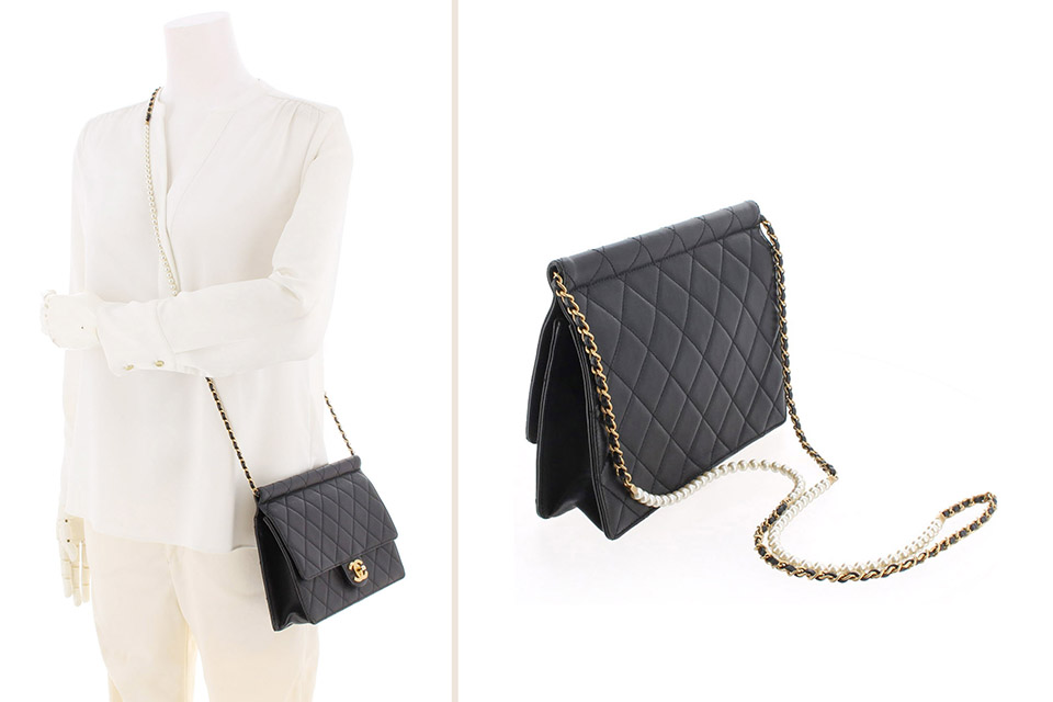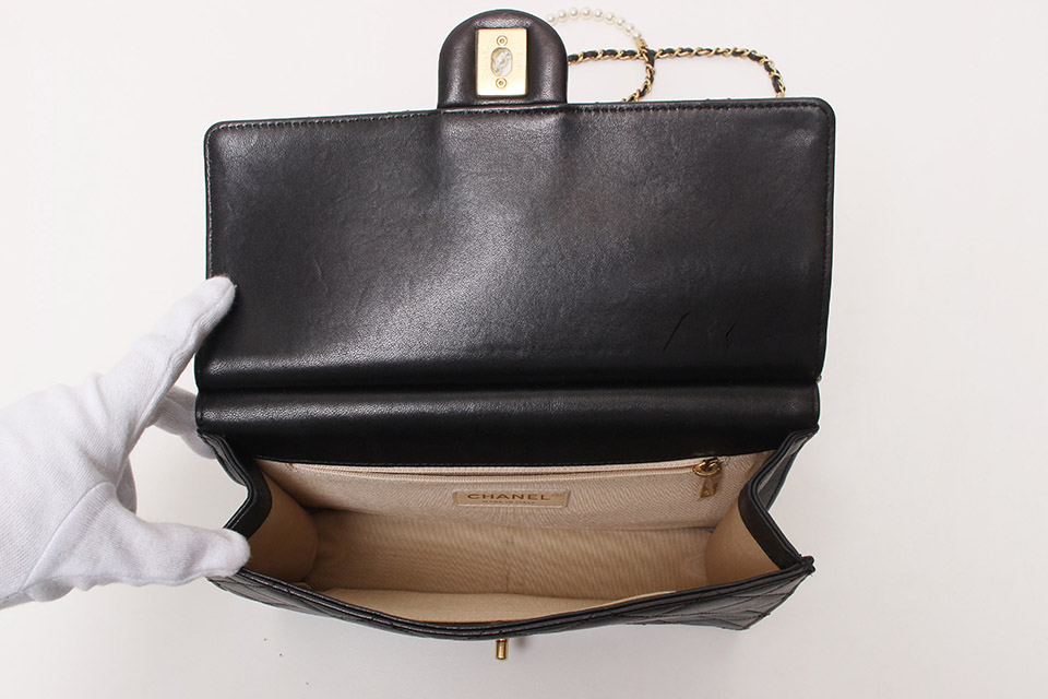 金具やパールに僅かに小傷、チェーン金具付近のフチにスレ、レザー表面やフラップ内側にスレ、内側キャンバスにスレや薄汚れが見られますが、全体的に状態は綺麗です。箱(ダメージ)・保存袋・Gカードあり。