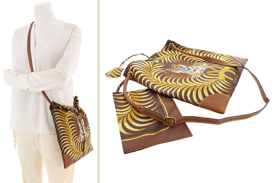金具に小傷、レザー部分にスレや汚れ、上部開口部附近に汚れ、内側に薄汚れ、ポーチに折れシワ、ショルダーにクセが見られます。箱・保存袋なし。ポーチあり。