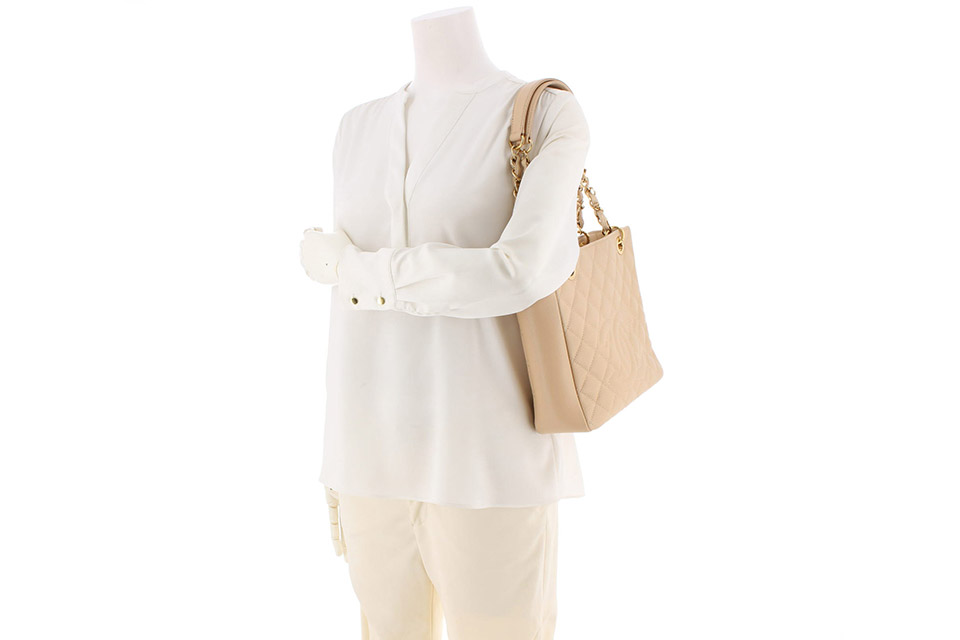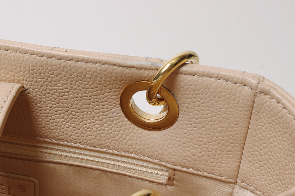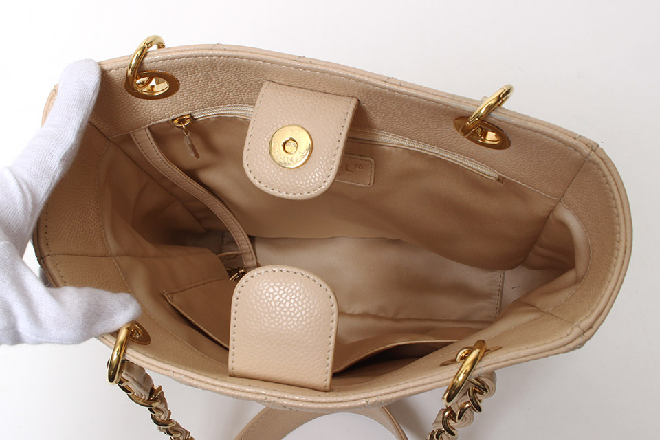 金具に小傷、四隅や開口部フチにスレ、ショルダーチェーン付け根に薄汚れ、内側に薄っすらと汚れ、少し型崩れ、僅かに保管臭があります。箱・保存袋・Gカードなし。