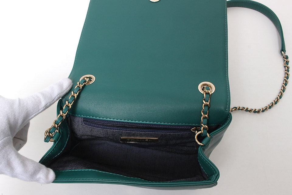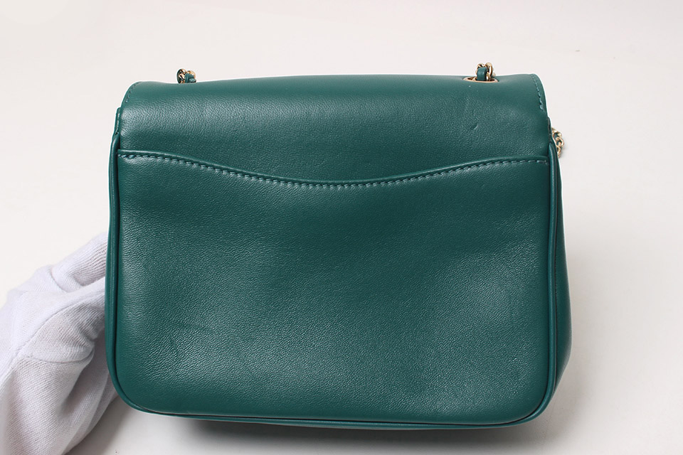 金具に僅かに小傷(正面のプレートには保護シールあり)、レザー表面にスレと型付き、少し型崩れが見られますが、全体的に状態は綺麗です。箱・保存袋・Gカードなし。
