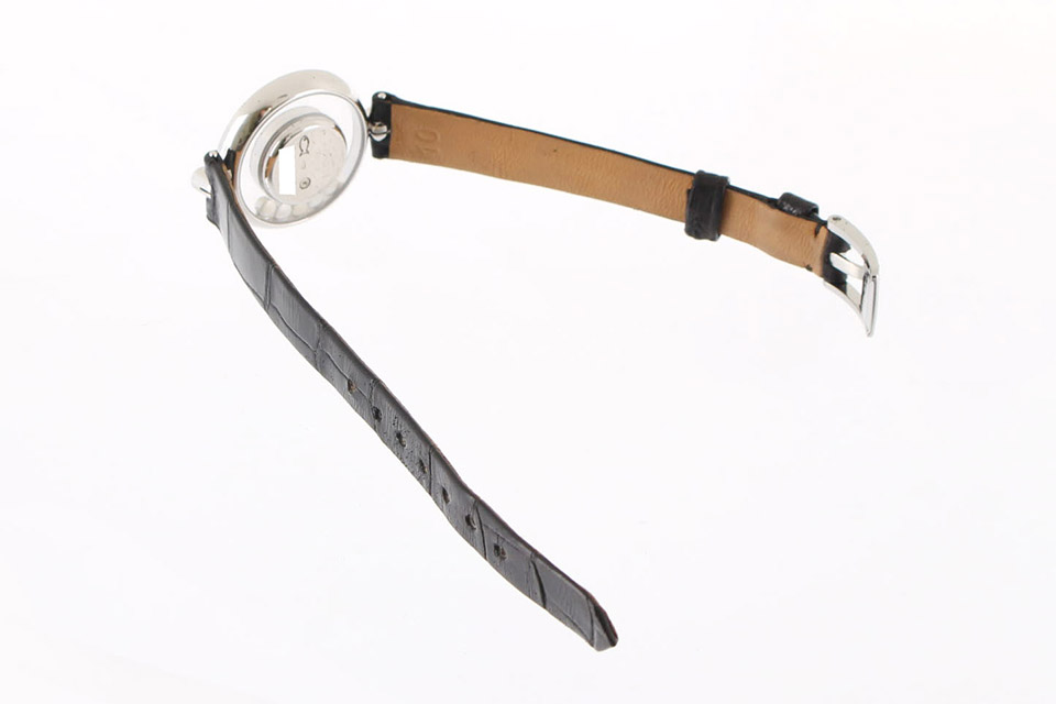ケースに小傷、ベルトにスレと薄汚れが見られますが、ブティックにて2025年9月に分解掃除等フルサービスをしておりますので、コンディション良好です。箱(内箱に粉ふきあり)・修理証明書兼保証書(切り抜きあり)あり。バースデー6ヵ月保証付。