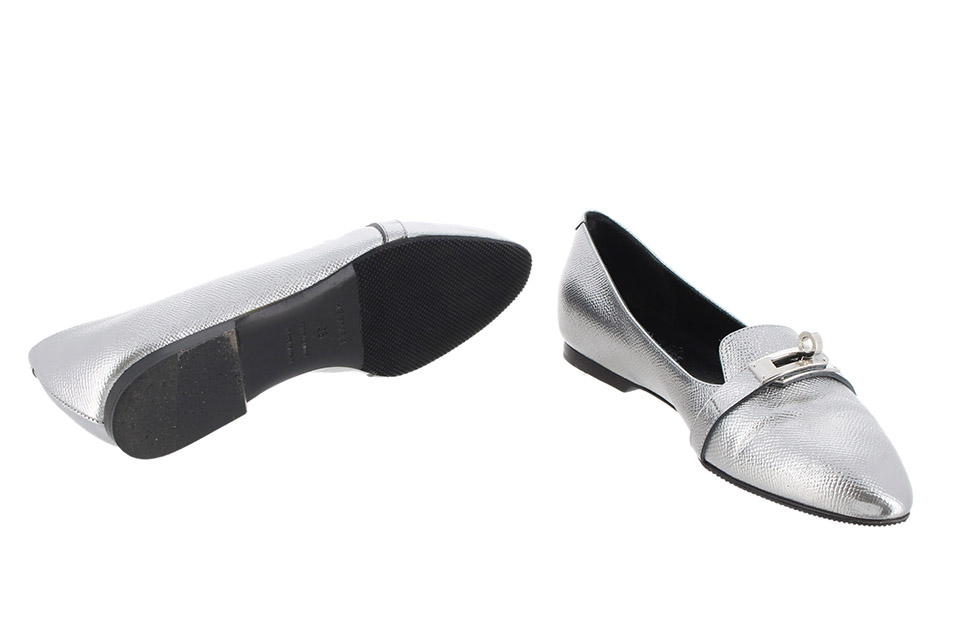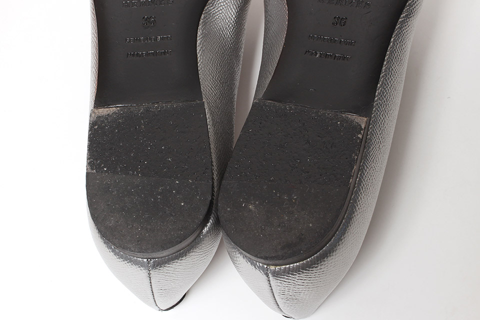 金具に小傷、レザーに僅かなスレやシワが見られますが、全体的に綺麗です。箱・保存袋あり。ソールに他社製ゴム貼ってます。