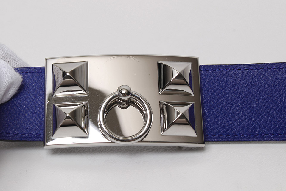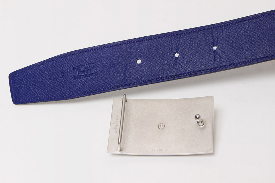 金具に小傷、金具跡、レザーに薄っすらとスレ、穴付近にシワ、型付は見られますが、全体的に綺麗です。箱・バックル用保存袋あり。