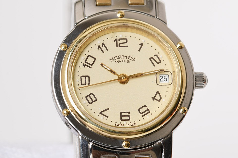 ベゼルと裏蓋に小傷、針に少し腐食が見られますが、電池交換・新品仕上げ済みでコンディション良好です。保証書なし。箱あり。バースデー6ヵ月保証付。