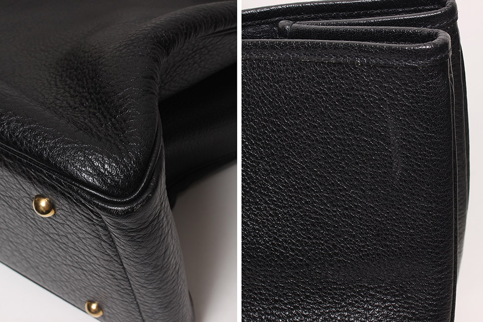 金具に小傷、表面、四隅、内側にスレ、型崩れ、香水の匂いがあります。箱なし。保存袋あり。