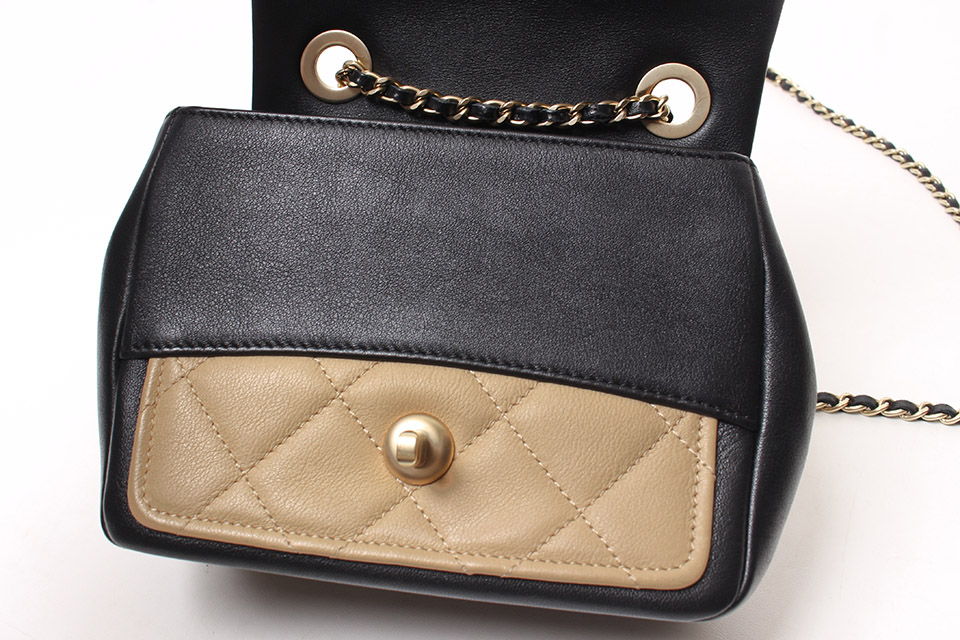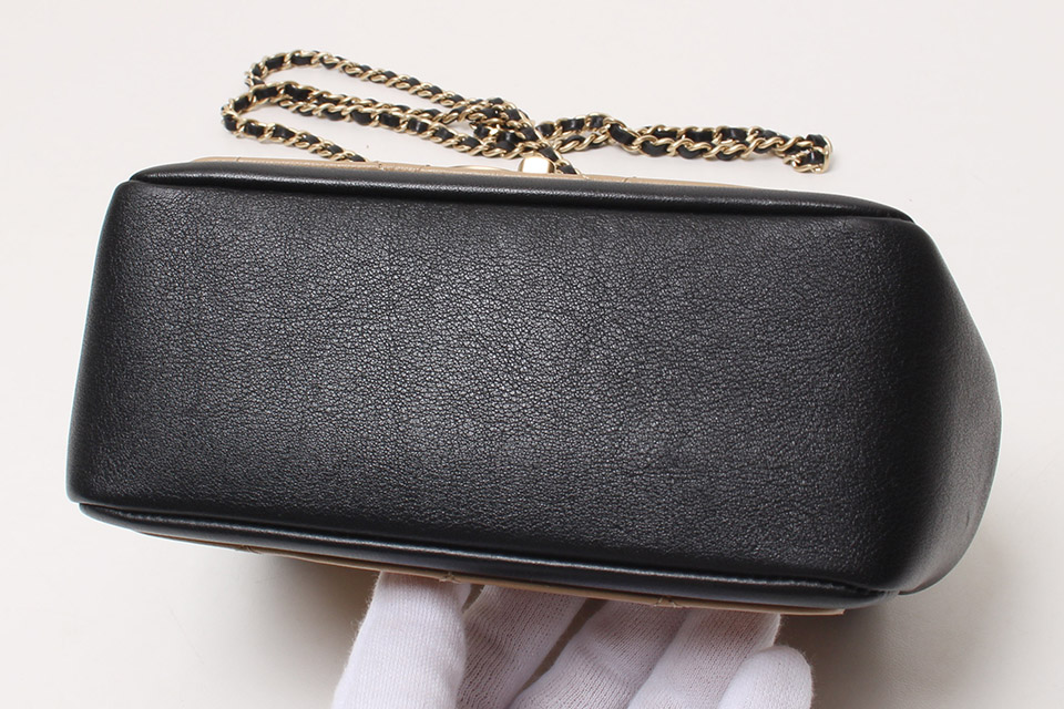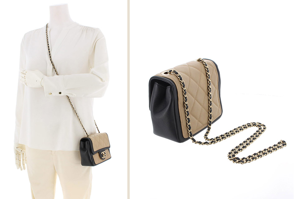 金具に小傷、フラップ内側やフチに僅かなスレ、表面や底面に薄っすらスレ、若干の型崩れがありますが、全体にあまり使用感が感じられず綺麗です。箱・保存袋・Gカードあり。
