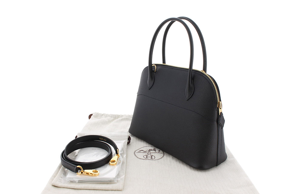 金具に小傷、内側にスレと型付きが見られますが、全体的に状態は綺麗です。箱・保存袋・ショルダーストラップ・レインカバーあり。