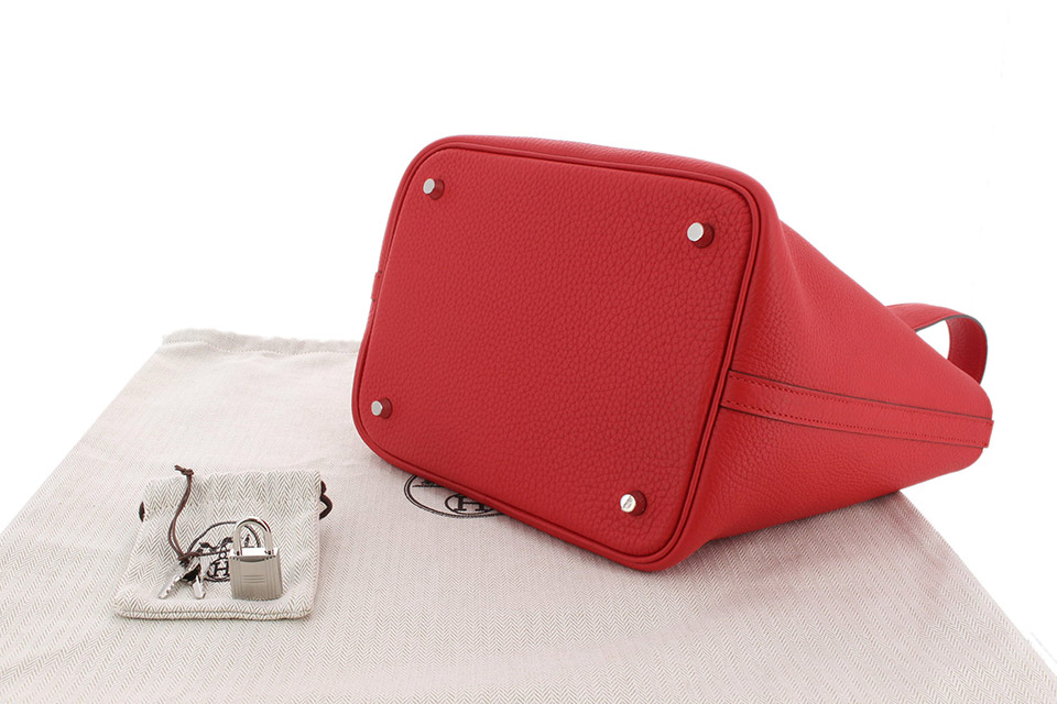 新品商品ですが、底鋲の保護シールが1ヵ所剥がれかけておりますので、未使用品としてのご提供です。箱・保存袋・カデナ・鍵2個あり。