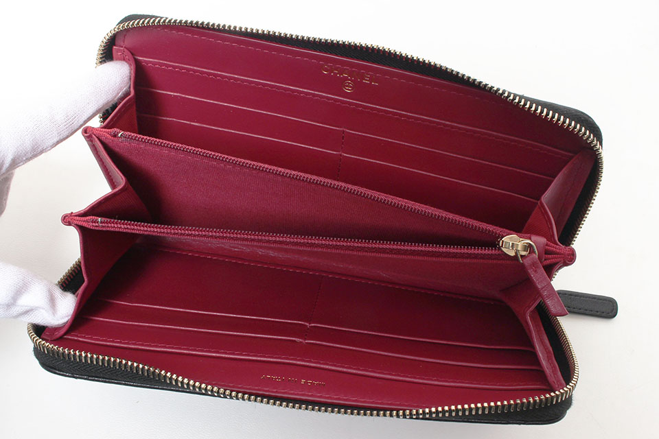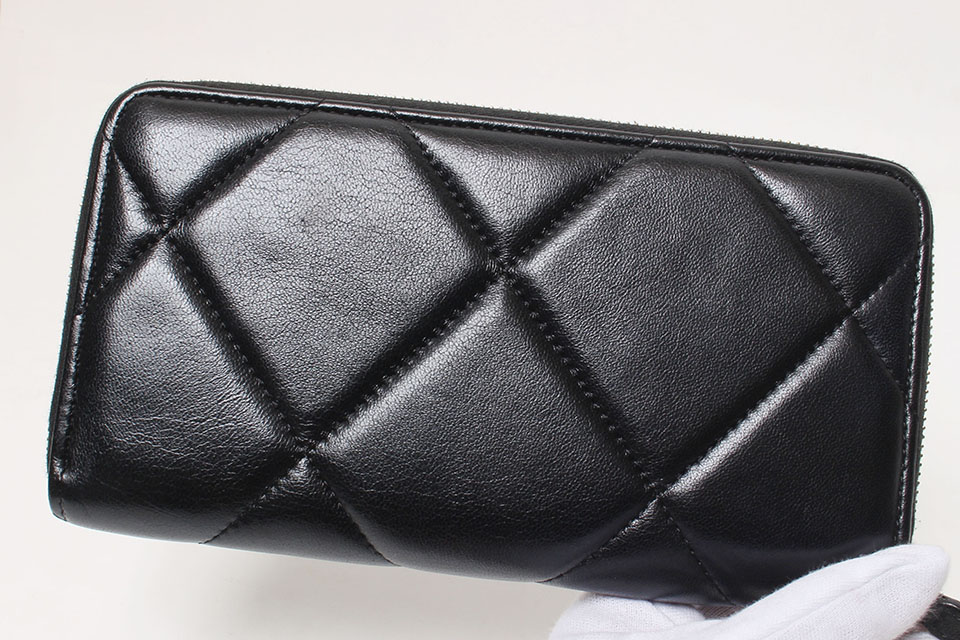表面に若干のスレ、小銭入れ内側に僅かな薄汚れは見られますが、あまり使用感なく全体的に綺麗です。箱(スレ)・保存袋・ランダムシリアルあり。
