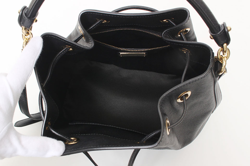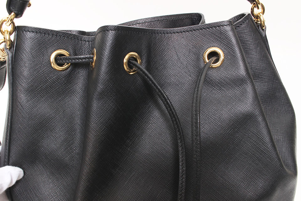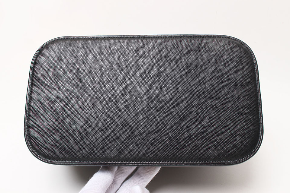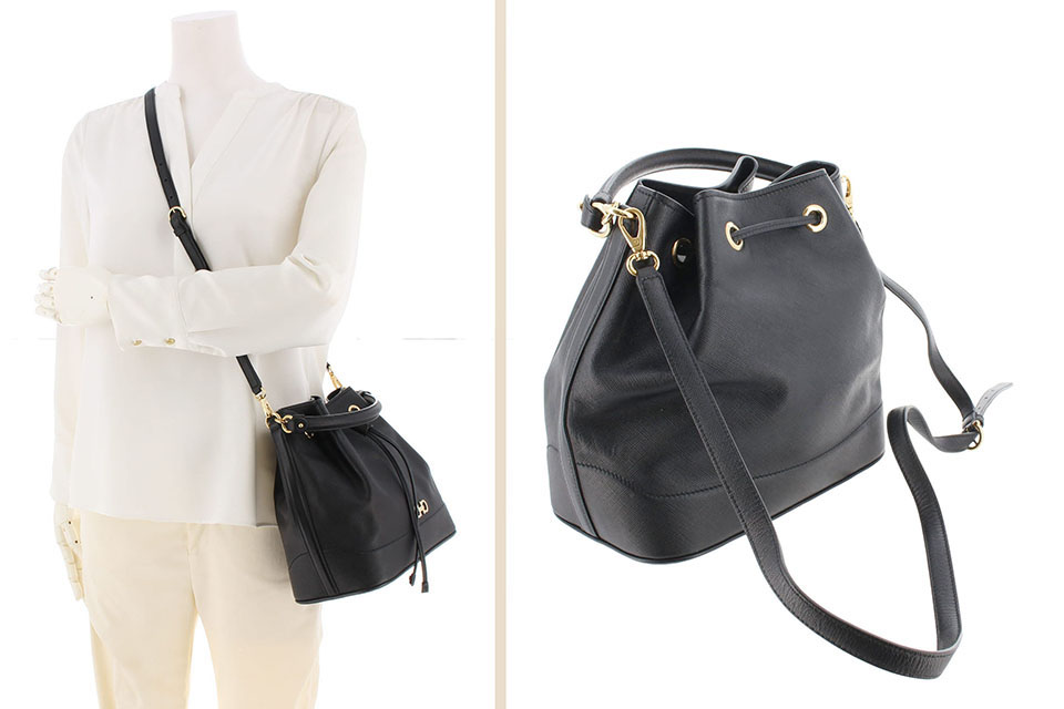 金具に小傷、四隅や下部パイピングにスレ、底面に僅かなスレや型付き、開口部附近にスレや小ジワ、ショルダーストラップにクセ付きやステッチのホツレが見られますが、全体的には綺麗です。箱なし。保存袋・ショルダーストラップあり。