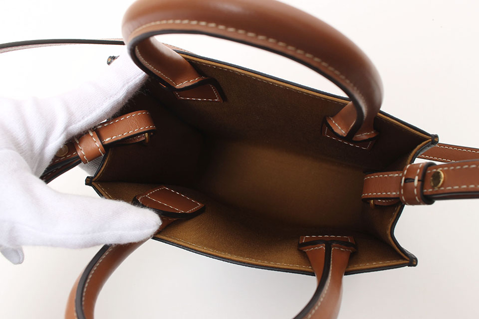 四隅に僅かなスレ、ハンドルに少し汚れ、内側に僅かなにスレは見られますが、全体的には綺麗です。箱なし。保存袋あり。