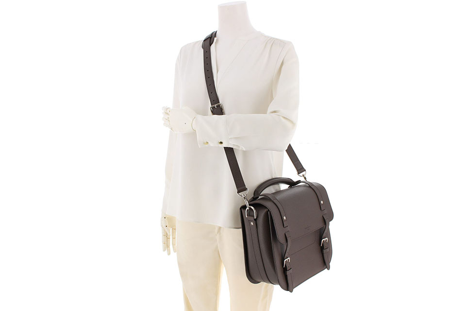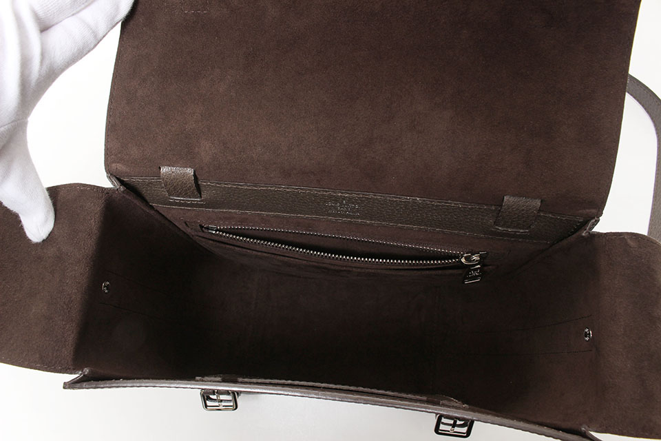 金具に小傷、レザー表面やフチに僅かなスレ、正面ベルト穴周辺にスレやクセは見られますが、全体的に状態は綺麗です。箱なし。保存袋・ショルダーストラップあり。