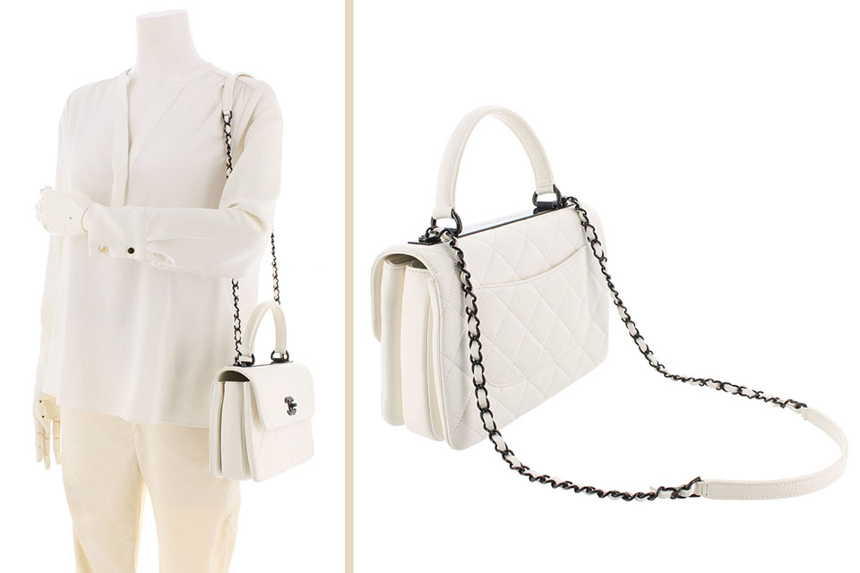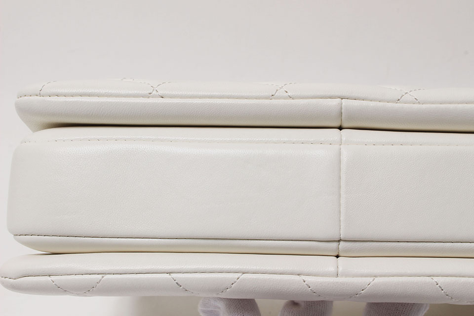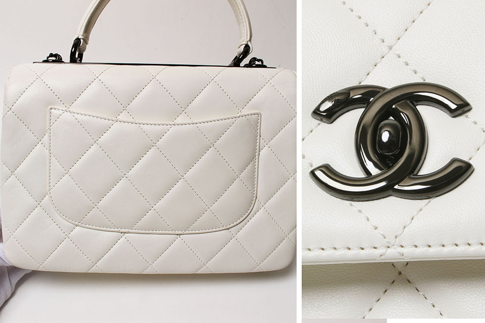 金具に僅かに小傷、四隅やフラップのフチに少しスレ、レザー表面に薄っすらスレ、底面に型付き、ハンドルや背面に少しヤケが見られますが、全体的に状態は綺麗です。箱・保存袋なし。メタルプレートあり。