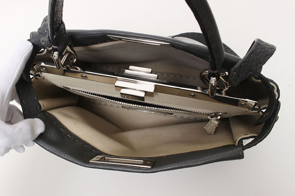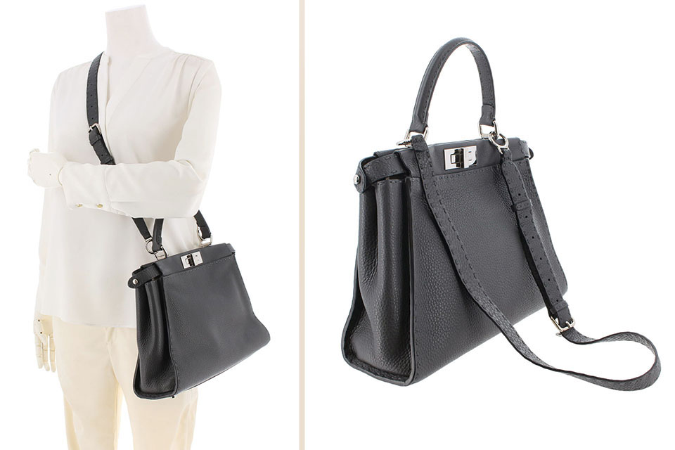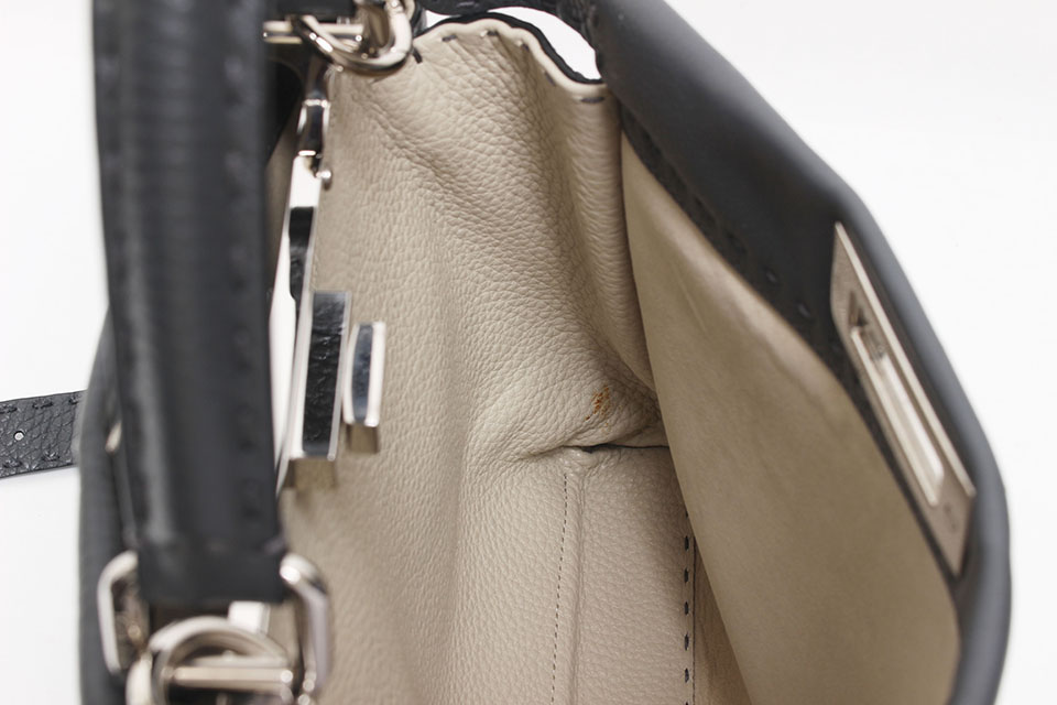 金具に小傷、フチにスレ、内側に薄汚れや上部に少し浮き、型くずれは見られますが、全体的には綺麗です。箱・保存袋なし。