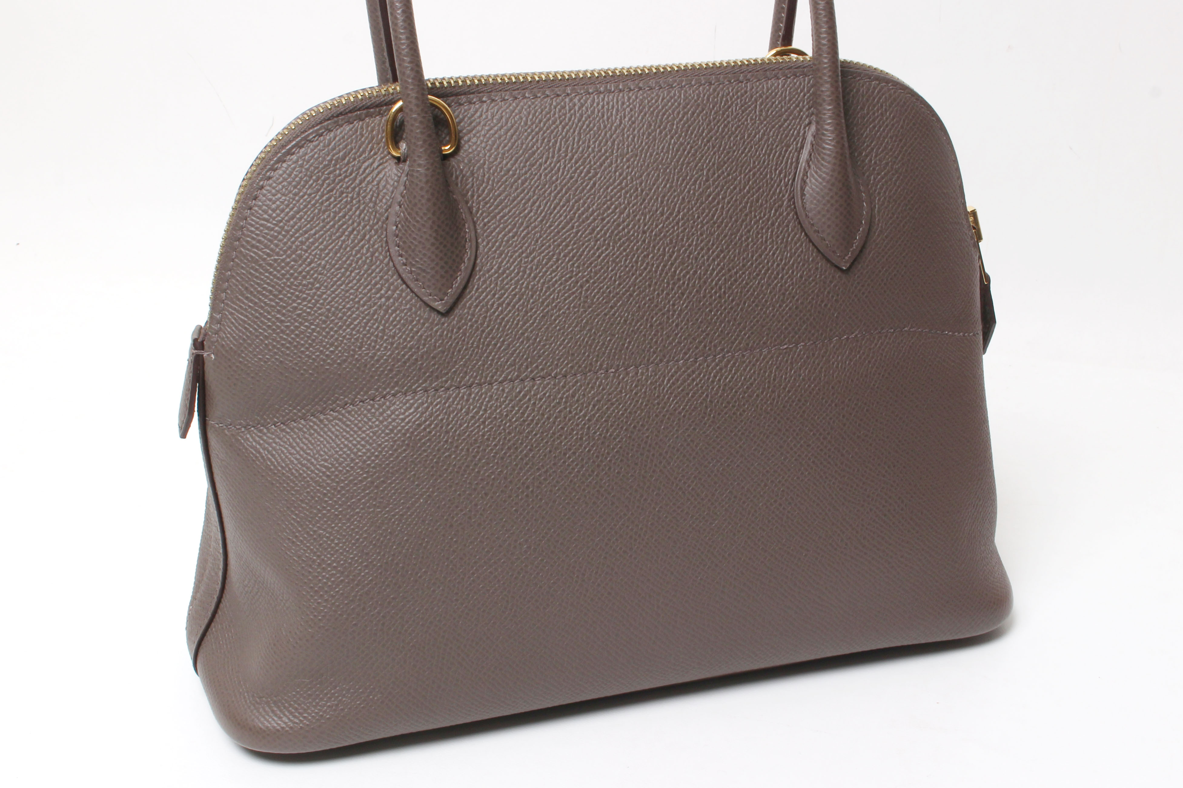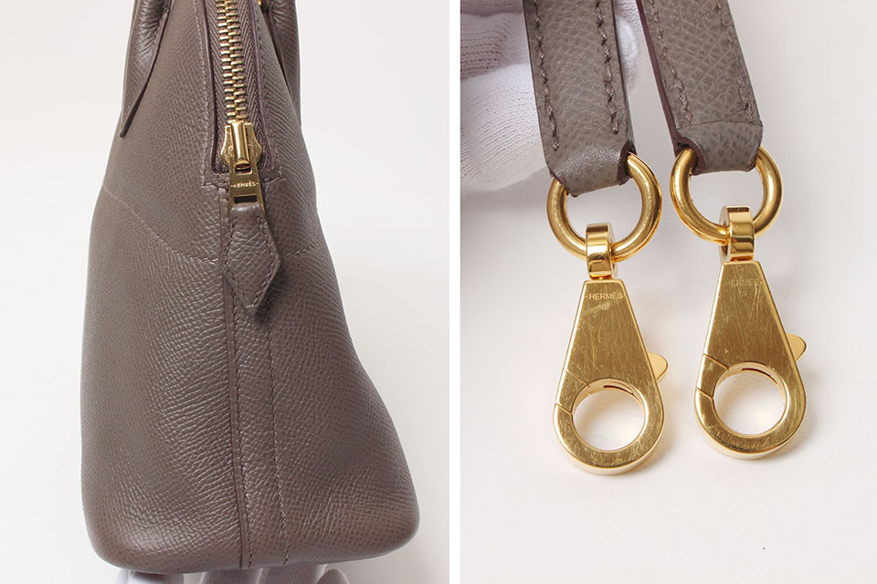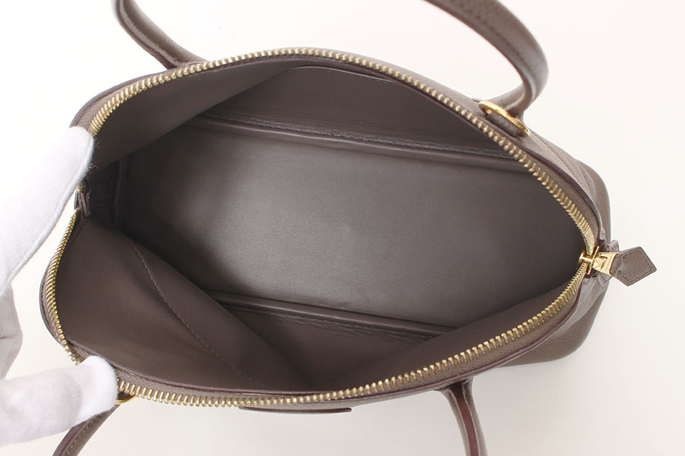 金具に小傷、ファスナー付け根のステッチ周辺に少しスレ、内側に若干のスレ、型崩れが見られますが、あまり使用感なく全体的に綺麗です。箱なし。保存袋・ショルダーストラップあり。
