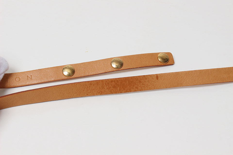 金具に小傷、ヌメ革にヤケ、ベルトにシミは見られますが、全体的に綺麗です。箱・保存袋なし。