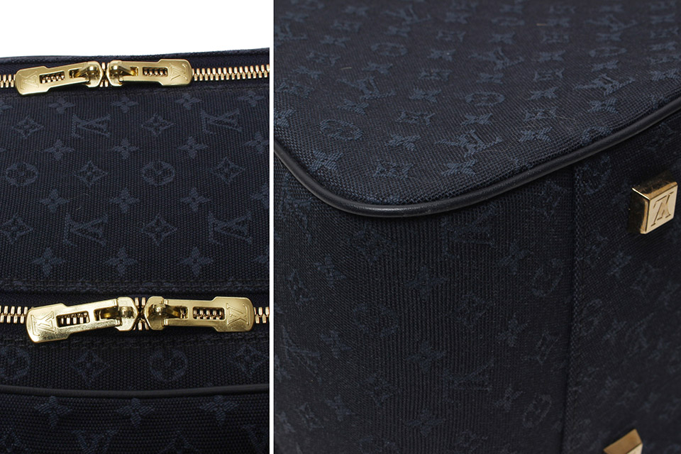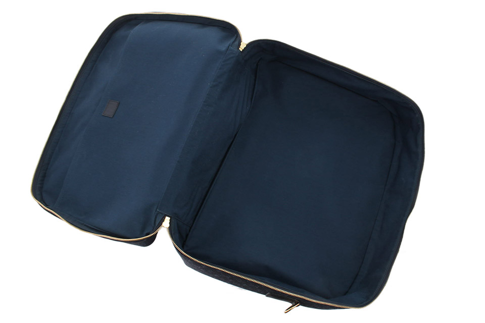金具に小傷、表面や内側、レザー部分に薄っすらとスレ、少し型崩れは見られますが、全体的に綺麗です。箱・保存袋・パドロック・鍵なし。ストラップ・ネームタグあり。