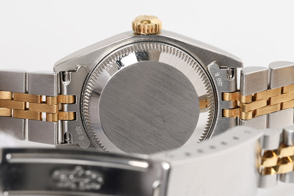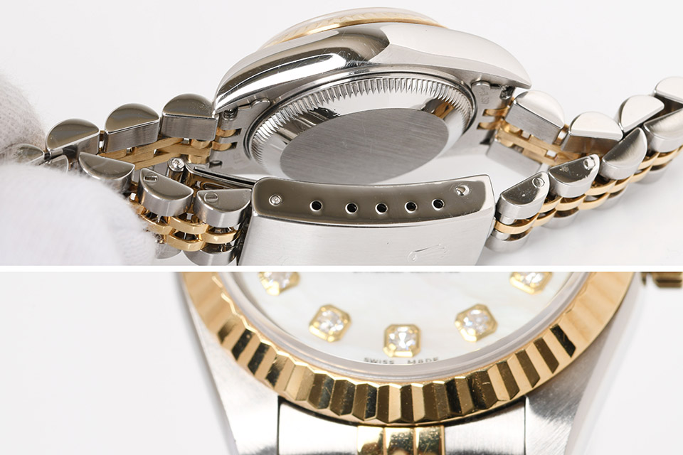 ベゼルと裏蓋に小傷が見られますが、ベルトにほぼ伸びもなくコンディション良好です。箱・保証書なし。バースデー6ヵ月保証付。
