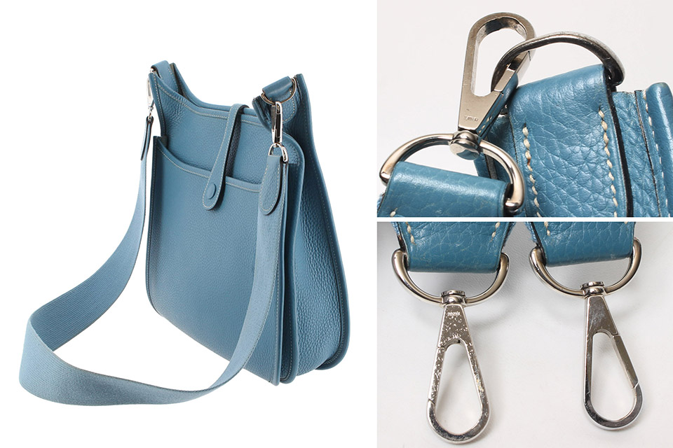 金具に小傷、表面や四角にスレ、型崩れ、内側にスレ、毛羽立ち、汚れ、ショルダーに汚れが見られます。箱・保存袋なし。ショルダーストラップあり。