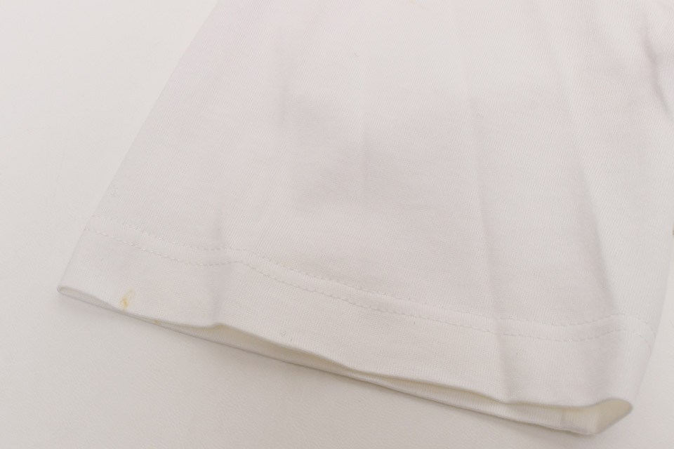 袖口とプリント部分に小さな汚れ、少し折ジワは見られますが、全体的に綺麗です。柔軟剤の香りが残っています。