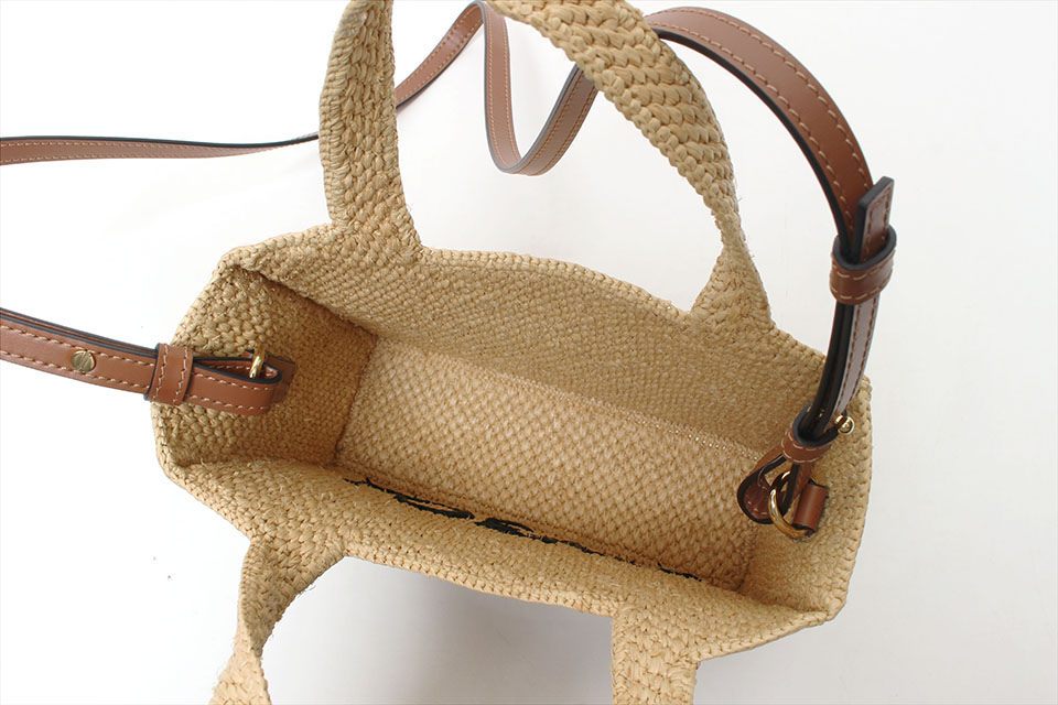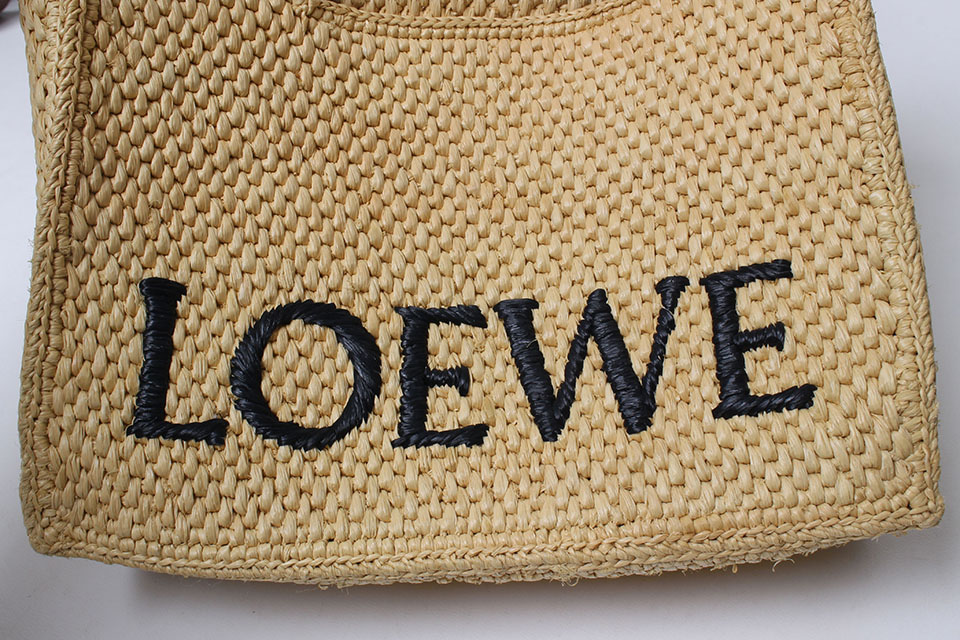 ラフィア特有の毛羽立ちは見られますが、全体的にはキレイです。箱・保存袋なし。