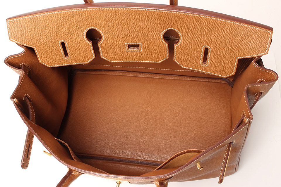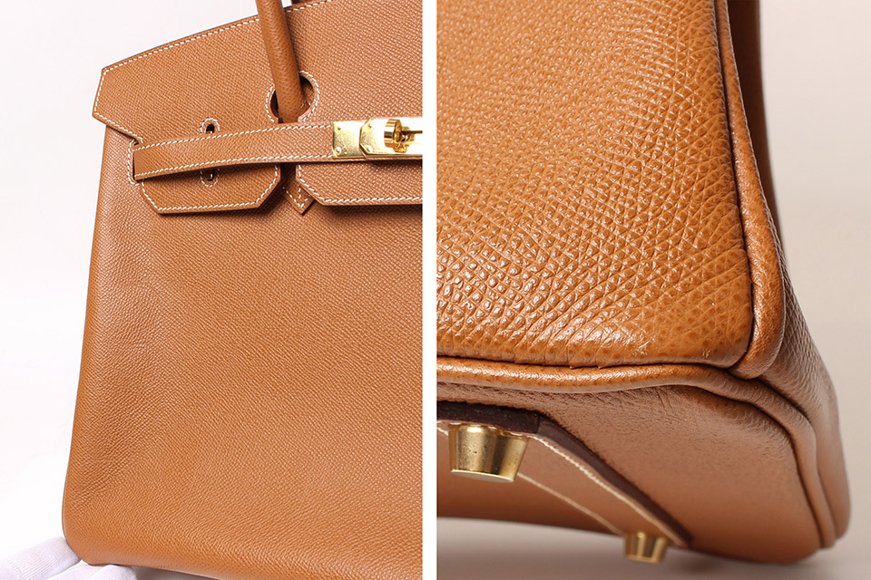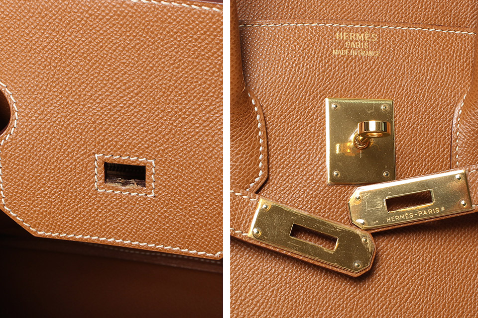 金具に僅かに小傷、四隅やハンドルに僅かにスレ、表面のフチに少しシワ、かぶせ中央の穴にスレ、内側底面に若干の型付きは見られますが、あまり使用感なく全体的に綺麗です。金具は一部シールが付いた状態です。箱・保存袋・カデナ・鍵2個・クロシェット・レインカバーあり。